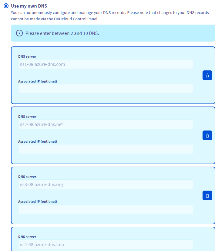 Keep in mind, Azure DNS is not the domain registrar, OVH remains the registrar