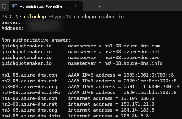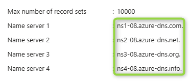 To manage the zone, Azure provides four Name Servers (NS) by default to ensure redundancy in case of failure.