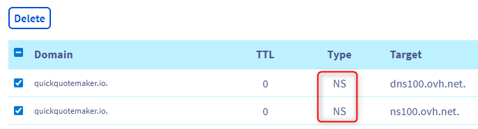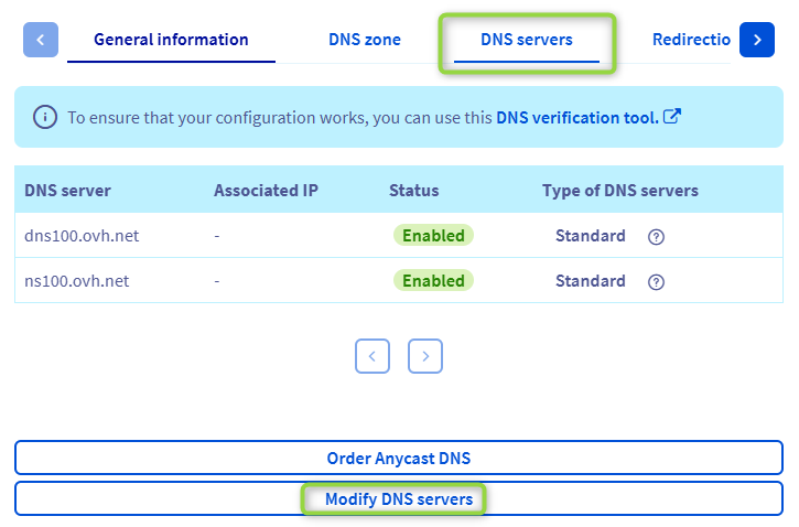 Copy the NS server names and keep them handy, they will be required to configure the delegation in the OVH portal.