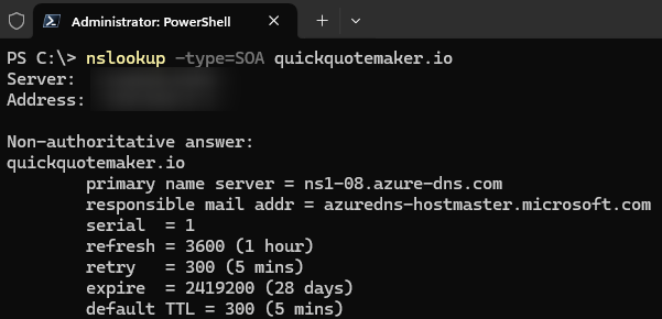 Now that the DNS zone is created and we have the name servers, we need to update the parent domain with the Azure DNS name servers. Each registrar has its own tools (portal, etc.) for managing DNS and modifying name server records.